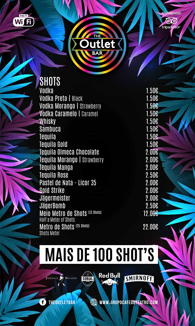Sendo considerado o bar mais conhecido da Rua das Fontes, O Mega Outlet Bar acaba por funcionar também como discoteca às sexta e sábados com a presença de um DJ até às 4h da manhã. É um espaço por excelência dedicado aos mais jovens que procuram diversão e curiosidade de experimentarem os melhores baldes de bebidas aos melhores preços. Parque de estacionamento perto do bar ou parquímetros.
